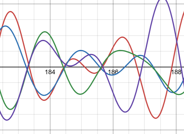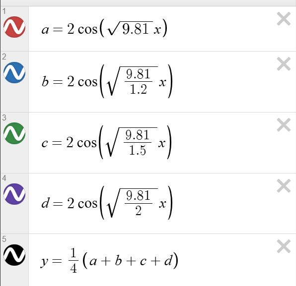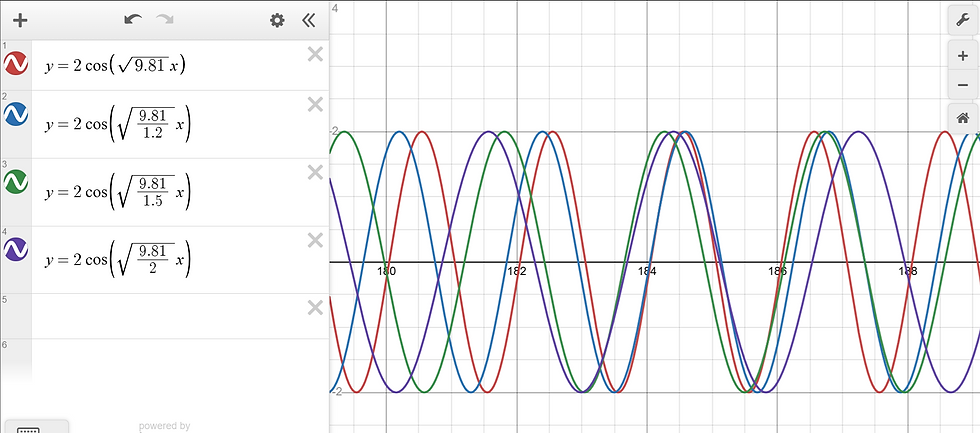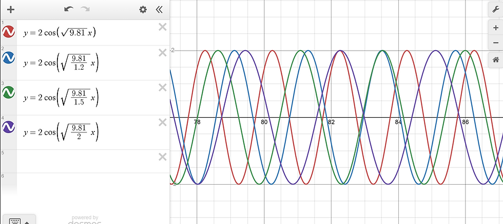For this, I graphed SHM equations of a pendulum, namely Y = Acos(ωt)